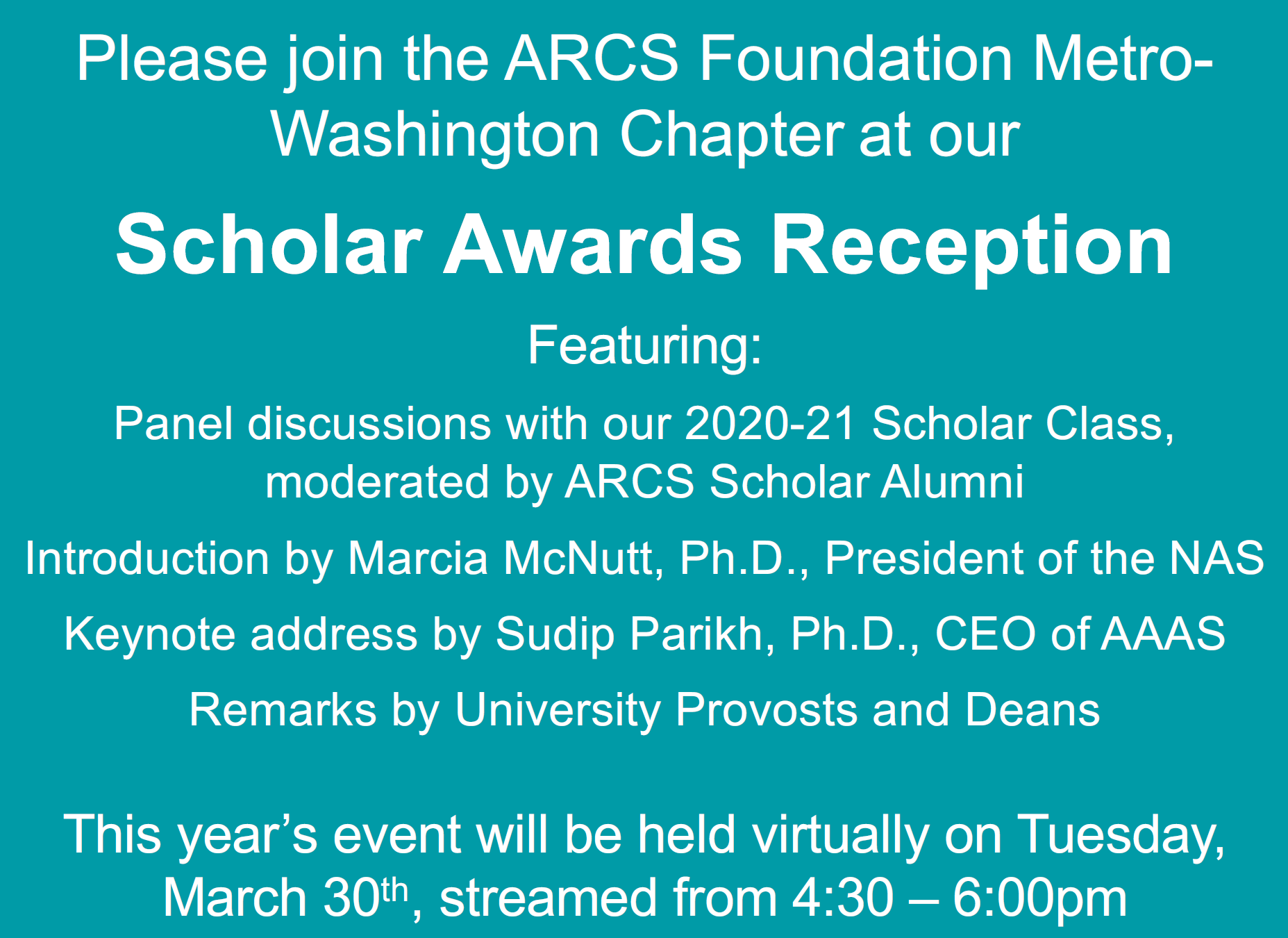 ARCS-MWC is delighted to present this year's Scholar Awards Reception as a streaming event.